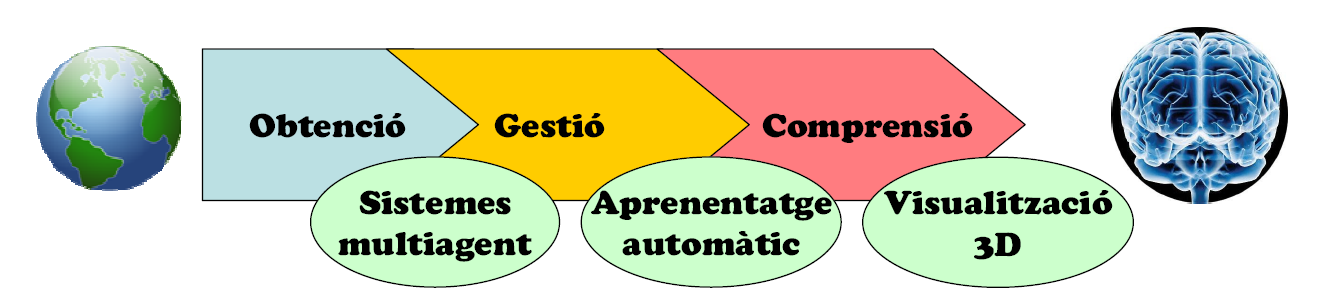 As previous picture shows, our research faces problems related to the gathering, managing and understanding of large volumes of data: